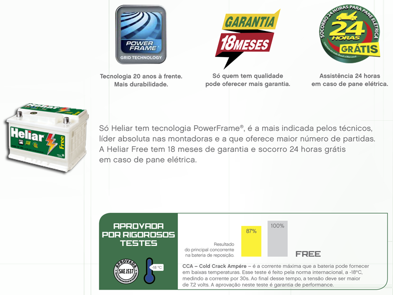 A nova tecnologia PowerFrame das baterias Heliar está 20 anos a frente da tecnologia da maioria das outras baterias do mercado.